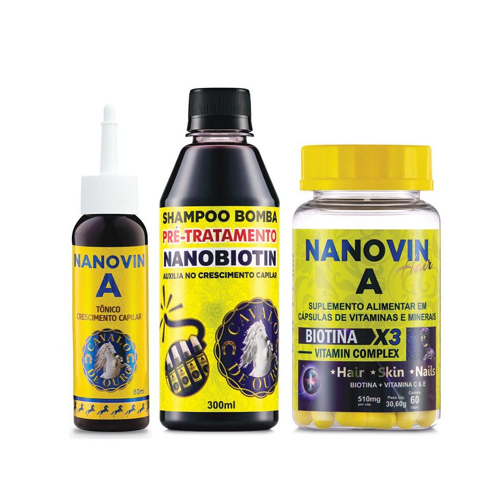COMBO NANOVIN A COMPLETO! Tônico + Shampoo + Suplemento Capilar. Tratamento 3 em 1 para crescimento acelerado, fortalecimento e nutrição profunda. Resultados comprovados! 🚀 Kit completo com DESCONTO ESPECIAL.